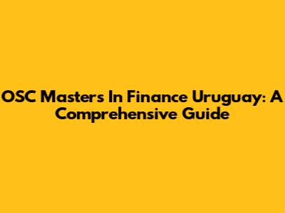 OSC Master's In Finance Uruguay: A Comprehensive Guide