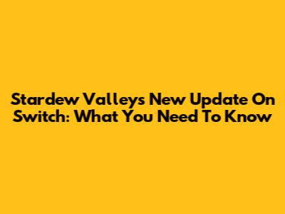 Stardew Valley's New Update On Switch: What You Need To Know