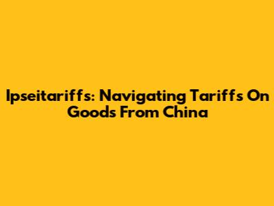 Ipseitariffs: Navigating Tariffs On Goods From China