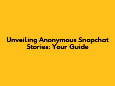 Unveiling Anonymous Snapchat Stories: Your Guide